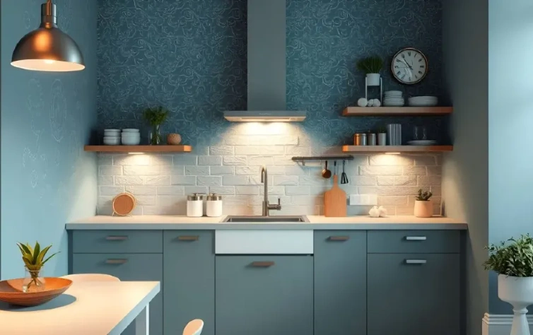 Um exemplo bem comum é o das cozinhas pequenas em apartamentos. Com móveis planejados, cada espaço é aproveitado de forma inteligente, garantindo armários e prateleiras sem atrapalhar a circulação. Quando combinados com papel de parede de padrão discreto, como listras finas ou geométricos suaves, o resultado é uma cozinha funcional, organizada e com estilo.